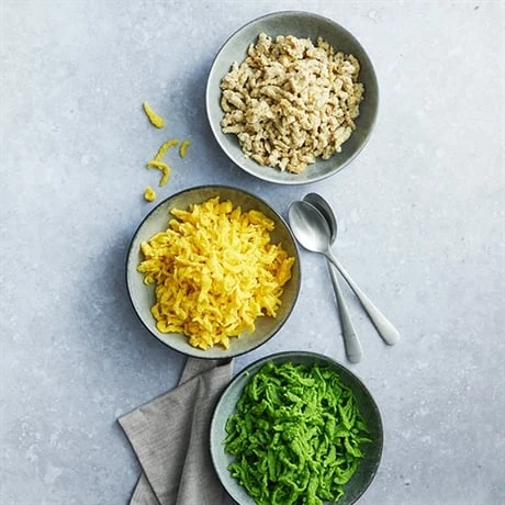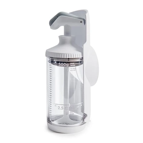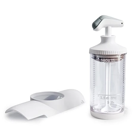 Betty Bossi vous simplifie la cuisine avec des appareils ingénieux à utilisation d’une simplicité déconcertante : l’appareil à spätzlis maxi Betty Bossi fait partie de cette gamme, vous offrant la possibilité de faire vos spätzlis en un temps record et avec un seul ustensile. Tout-en-1, le corps de l’ustensile dispose de la recette directement gravée sur la surface, avec des traits de graduation vous indiquant jusqu’où les ingrédients doivent aller. Avec ce système, vous n’aurez besoin ni de balance, ni de verre doseur, donc moins de vaisselles et de temps perdu lors de la préparation. Une fois les aliments insérés, utilisez le piston pour mélanger facilement et obtenir une préparation homogène, avec une grande stabilité grâce à sa base antidérapante. C’est prêt !