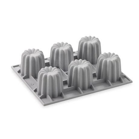 Grâce à un procédé unique de fabrication, l’élastomoule 6 canelés De Buyer® cuit 6 biscuits délicatement moelleux à l’intérieur et croustillants à l’extérieur. Ce moule professionnel permet une transmission thermique exceptionnelle de -70°C à + 300°C avec un gain de temps de cuisson de l’ordre de 20 %. Les micro-bulles composant la mousse de silicone, captent immédiatement la chaleur et la caramélisation des sucs est remarquable pour des biscuits à la texture et aux saveurs incomparables. Les canelés se démoulent ensuite rapidement, sans beurrer, parfaitement formés et bien dorés.
