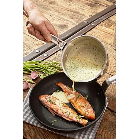 Avec cette Poêle de 32 cm de diamètre cuisinez sans colorer vos poissons, légumes, céréales…
