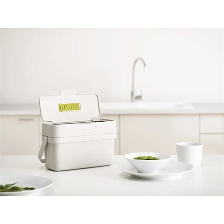 Ce bac à compostage compact est conçu spécifiquement pour faciliter la récupération des déchets alimentaires. Doté d’un couvercle rabattable pratique et d’une ouverture extra large, il est idéal pour recueillir les restes de nourriture directement dans les assiettes. L’évent d’aération réglable au niveau du couvercle permet d’évacuer l’humidité : réduisant ainsi la formation d’odeurs ou, par temps chaud, fermé pour empêcher les insectes de pénétrer. Peu encombrant, il se range facilement sur le plan de travail ou dans un placard et sa fixation vous permettra même de le monter sur une de vos portes de placard !