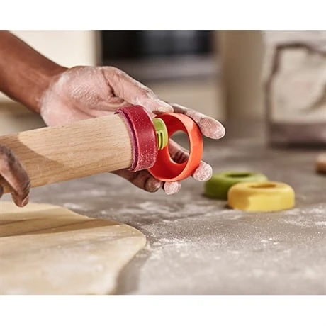 Le rouleau à pâtisserie réglable PrécisionPin Joseph Joseph est un ustensile de pâtisserie ingénieux. En effet, ce rouleau en bois de hêtre de qualité vous sert pour étaler tous types de pâtes à l’épaisseur de votre choix. Grâce à ses embouts dévissables, vous choisissez parmi les 5 jeux d’anneaux amovibles celui qui correspond à vos besoins du moment. 2, 4, 6, 8 ou 10 mm d’épaisseur, la pâte obtenue est parfaitement régulière pour une cuisson uniforme partout.