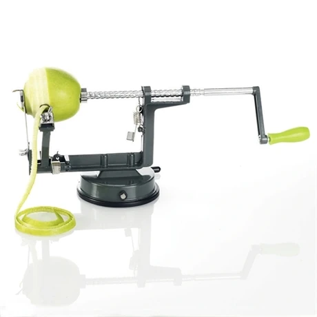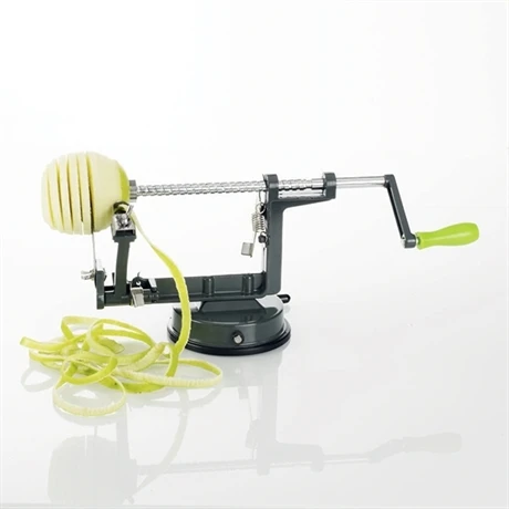 Le nerf de la guerre pour gagner du temps dans la préparation de vos tartes aux pommes se situe au niveau de l’épluchage. Pour pallier ce problème, nous avons inclus dans ce pack un pèle-pommes en acier Mathon qui épluche, étrogne et coupe les pommes en quelques mouvements. Fixez le pèle-pomme sur votre plan de travail grâce à la ventouse, plantez la pomme et tourner la manivelle. Vous n’aurez besoin de rien de plus pour faire toute votre garniture de tarte aux pommes.