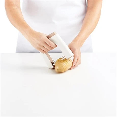 Découvrez le multi-lames légumes au four, pour préparer des légumes et fruits Hasselback, une alternative plus croustillante et plus savoureuse pour vos plats du quotidien ! Le principe de la cuisson HasselBack, la réalisation de fines tranches en éventail sur vos produits préférés, entre lesquelles vous insérerez vos ingrédients et assaisonnements pour une cuisson riche en goût ! Vous obtiendrez un résultat croustillant à l’extérieur et doux et crémeux à l’intérieur.