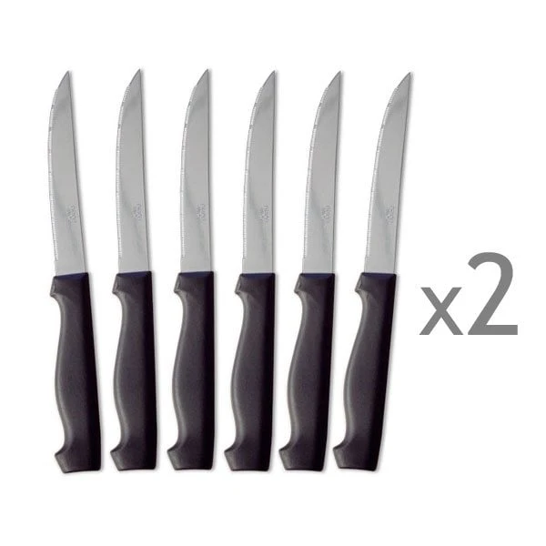 Ces 12 couteaux à steak sont très pratiques : leur lame dentée permet de couper les viandes les plus cuites. Dotés d’un manche ergonomique, ils tiennent bien en main.