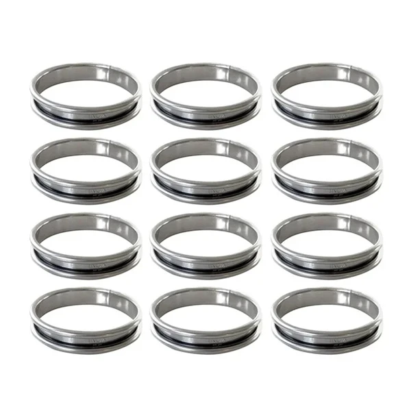 Ce lot comporte 12 cercles à palets bretons. Ils seront efficaces pour modeler votre pâte en forme de palets breton très facilement. Les formes seront parfaites ! En inox, le cercle assure une pâte dorée et croustillante.