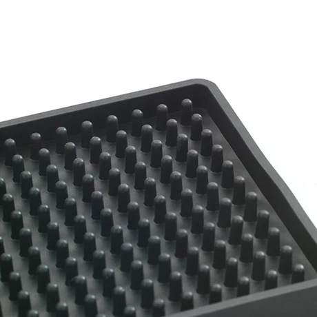Grâce au tapis en silicone de 40 x 30 cm, votre vaisselle sèche et les picots maintiennent vos verres stables qui ne glisseront pas. Equipé de rebords, l’eau ne s’écoule pas sur votre surface de travail. La matière siliconée ne raye pas vos couverts et n’abime pas votre plan de travail. Sa version longue et fine de 42 x 8 cm est idéale pour être placée entre votre évier et votre crédence. Elle est notamment pratique pour appuyer vos planches à découper au mur et les faire reposer sur le tapis sans qu’elles ne glissent.