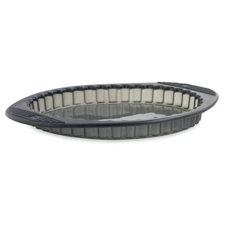 Le Moule à tarte silicone diamètre 28 cm fait partie de la gamme de moules Mastrad Silicone, qui allie respect des traditions et technologies innovantes pour faciliter la cuisine du quotidien. Ces moules sont incassables, en 100% silicone Premium très résistante. Anti-adhérents et ultra-résistants (de -40°C à +220°C), ils sont munis de poignées rigides pour une manipulation aisée. Leur coloris gris translucide permet de contrôler plus facilement la cuisson. Ils assurent un démoulage parfait et se nettoient au lave-vaisselle.