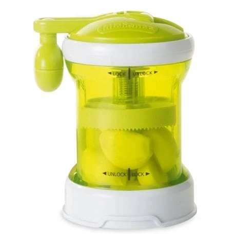 Indispensable pour servir de l’ail fraîchement haché ou tranché à table, le Moulin à ail 2 en 1 hache l’ail par rotation de la manivelle dans un sens, et coupe des fines lamelles par rotation dans le sens inverse, à l’aide d’une seule grille sécurisée en acier inoxydable. Pratique, sa manivelle est repliable pour un rangement compact.