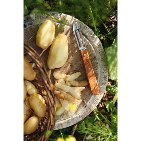 - – Un couteau à légumes N°114 pour tourner, nettoyer et éplucher les légumes en préservant leurs vitamines. La lame de 7 cm recourbée possède un dos grattoir pour nettoyer les jeunes pousses et les légumes sans les abîmer.