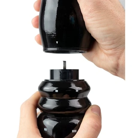 Le moulin à poivre u’Select Paris électrique noir tire son esthétique élégante de la gamme Paris et intègre un système électrique de pointe. En bois massif et doté d’un mécanisme complètement dissimulé dans son corps, il est le premier moulin électrique à s’utiliser avec le même geste qu’un moulin manuel. 1/8 de tour avec la tête et le système se déclenche pour assaisonner vos plats. Et pour s’adapter à toutes vos recettes, un bouton situé sur le dessus vous permet de régler la taille de la mouture.