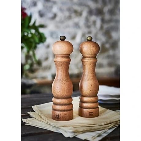 La collection Antique propose les moulins emblématiques et historiques de Peugeot avec une finition antiquaire : logo marqué au fer à chaud et bois issu de fôrets françaises, vieilli et patiné à la main. Cette collection met donc en valeur le charme et la patine du temps, mais s’inscrit également parfaitement dans des univers très contemporains.
