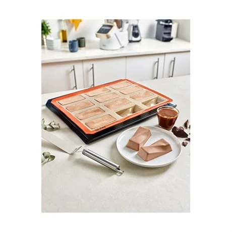 Le démoulage s’effectue sans problème grâce à l’usage d’un silicone anti-adhérent en surface couplé à une couche de toile de verre qui apporte de la souplesse à la plaque. Vous n’avez pas besoin de beurrer ou de fariner vos empreintes avant de les garnir de votre préparation, ce moule vous promet un démoulage facile et précis qui mettra en valeur la forme originale de votre réalisation.