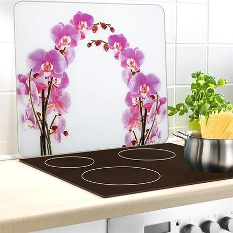 La protection murale en verre Orchidée protège joliment votre mur des éclaboussures et projections de cuisine. Elle peut être utilisée comme protège plaque de cuisinière, écran mural, vaste planche à découper ou plan de travail mobile. Résistante aux chocs et aux éraflures, elle peut être utilisée de façon universelle. Munie de 4 tampons antidérapants pour une parfaite stabilité, elle se nettoie facilement, d’un coup d’éponge.