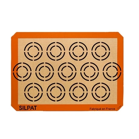 Grâce à ses 13 empreintes, la toile de cuisson cookies Silpat 42 x 29,5 cm permet de réaliser facilement et rapidement des cookies ou d’autres petits gâteaux, qui auront le même diamètre, pour des présentations gourmandes.