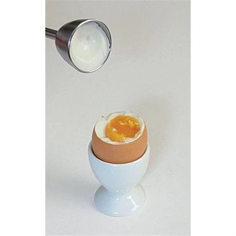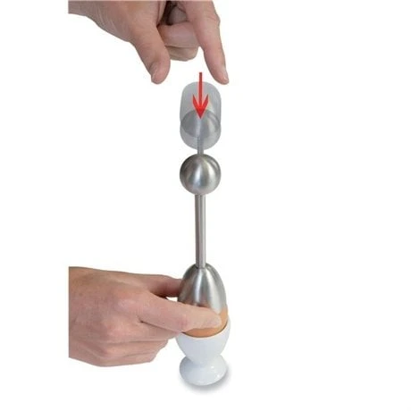 Le toqueur à œuf découpe un cercle net dans la coquille d’un œuf à la coque ou dur, sans aucun éclat. Très simple d’utilisation, il suffit de le poser sur le haut de l’œuf, de tirer le piston et de le relâcher. Inox.